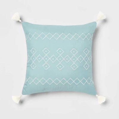 Evoke lush comfort and style in your bedroom oasis with the Hartly Woven Diamond Comforter Bedding Set from Threshold™. The comforter is adorned with white embroidered diamond motifs on a contrast-colored woven matelasse background for a stunning aesthetic that will complement any bedroom decor. A square and a rectangular decorative pillow with an embroidered or fringed diamond design, as well as matching pillow sham(s), coordinate with the top of the bed for a cohesive look. This comforter bedding set features a year-round fabric construction for comfortable use. Pair it with white bedsheets to enhance the polished look.