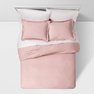 Bring elegance and charm into your bed space with the Family Friendly Duvet Cover & Sham Set from Threshold™. Made from a breathable fabric, this solid duvet cover and sham set keeps you cozy and comfy in bed. Boasting a slub construction for a hint of texture and featuring a white hue, the duvet cover is accompanied with two coordinating shams with flange-trim detailing to add decorative flair to your sleeping nook. Simply add contrasting sheets and other bedding pieces of your choice to the top of your bed to create a cozy resting spot in your master suite, guest bedroom or just about any other bedroom in your home.