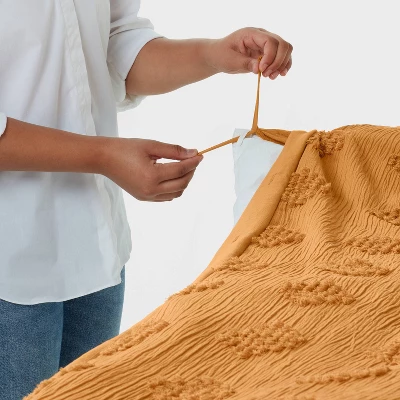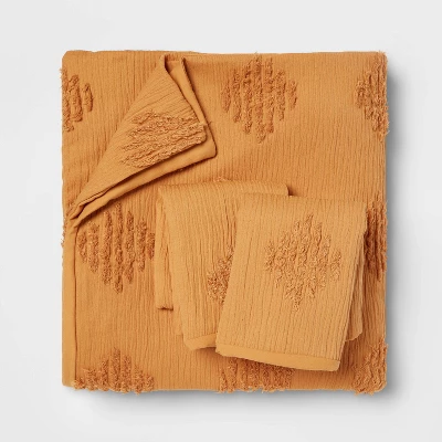 Give your restful retreat a refresh while also adding a wonderful focal point to the room with the Tufted Diamond Crinkle Duvet Cover & Sham Set from Threshold™. The stylish duvet cover is finished in a solid hue with a crinkled texture, and is decorated with complementing tufted diamond motifs for an eye-catching look. Included matching pillow sham(s) complete the top of your bed in cohesive elegance. This bedding set features a year-round fabric construction for comfortable use. It has button closures and string ties on the duvet cover, and a six-inch envelope closure on the sham(s) for snugly securing the inserts while still allowing for easy removal. Pair this duvet cover bedding set with cream bedsheets to enhance the sophisticated and clean look, and top with throw pillows in contrasting colors and patterns to finish a lovely setting.